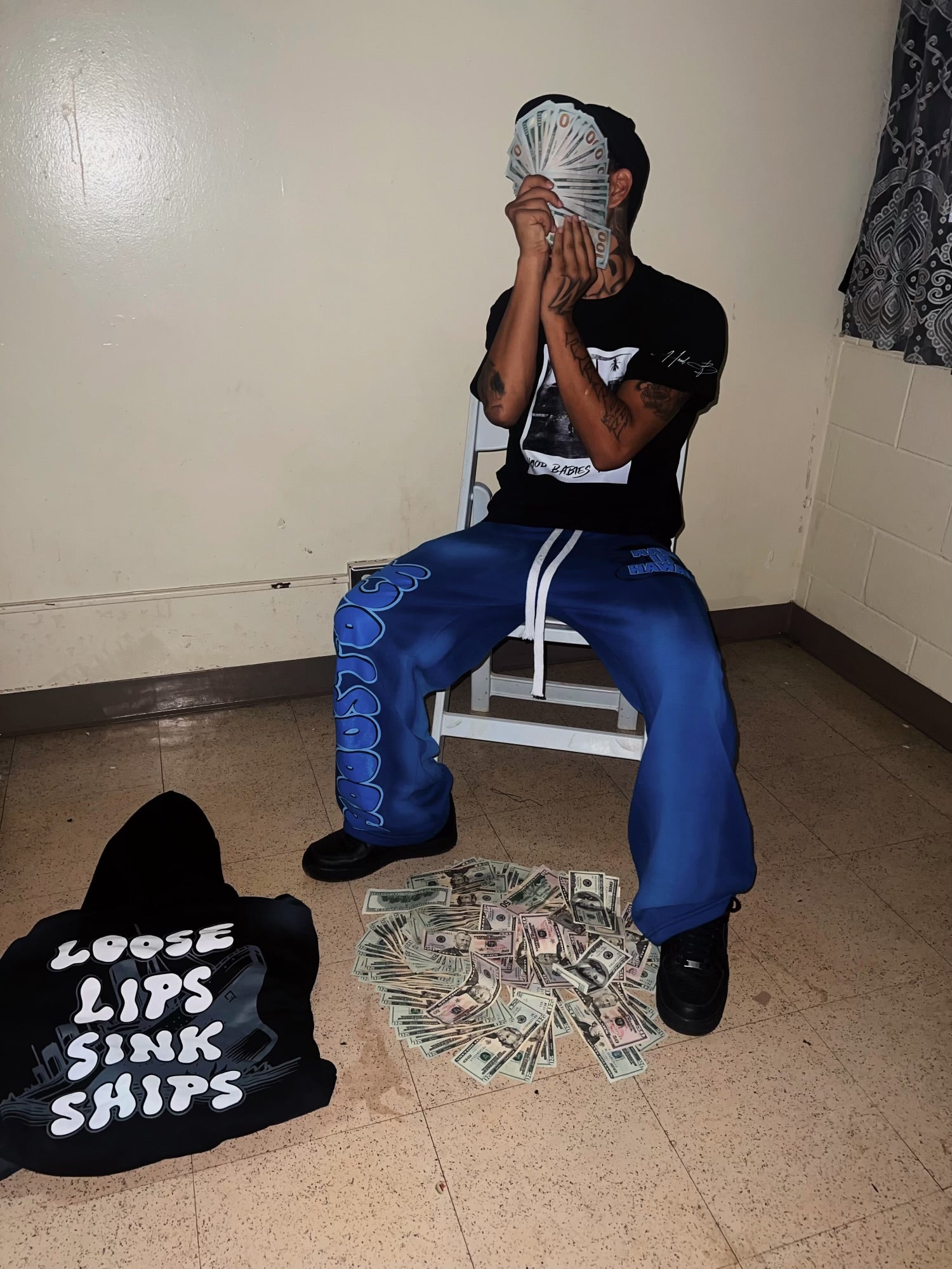 BLACK LOOSE LIPS SINK SHIPS SWEATSUIT